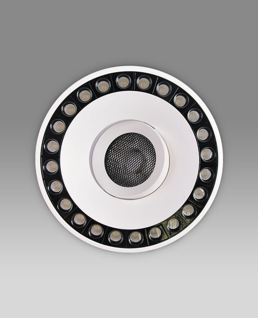 Link System features a distinctive design that not only delivers general lighting but also provides focused accent lighting, including downlights and spotlights. Additionally, the system can be seamlessly integrated with other elements such as cameras, speakers, and more, enhancing its versatility.