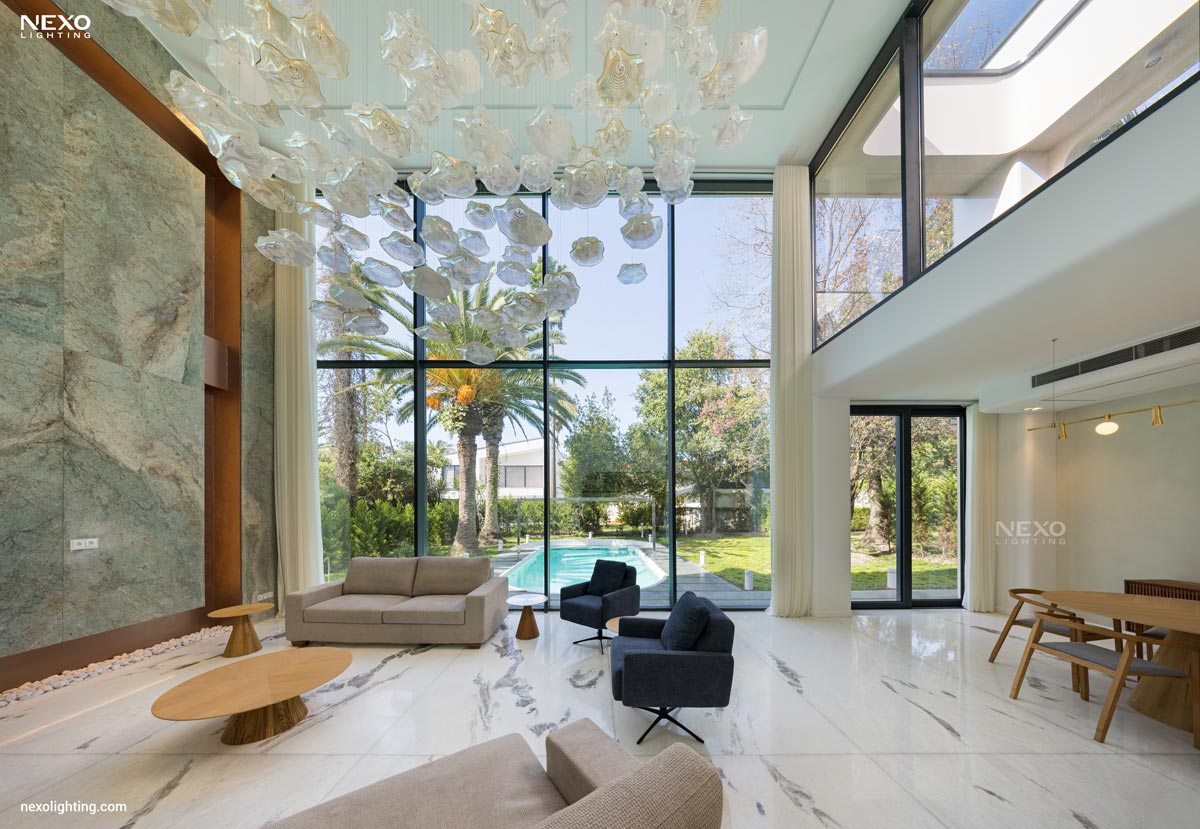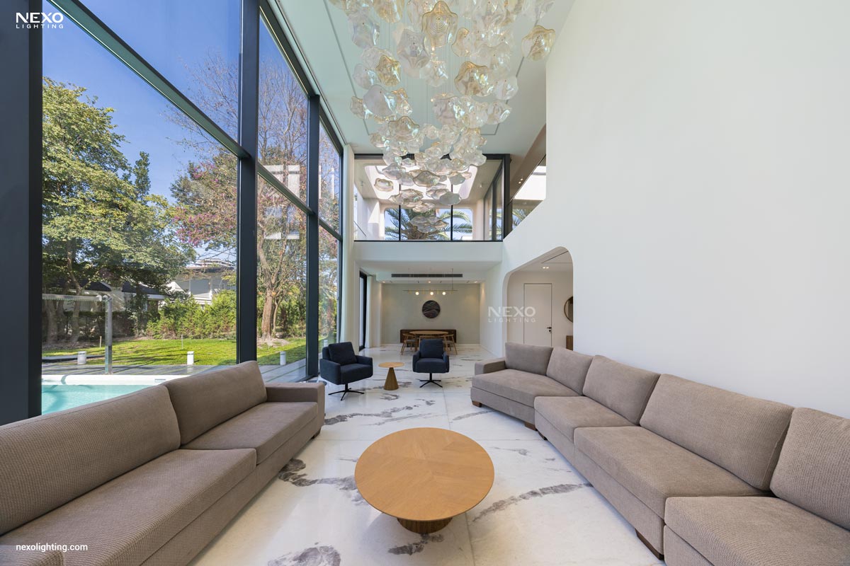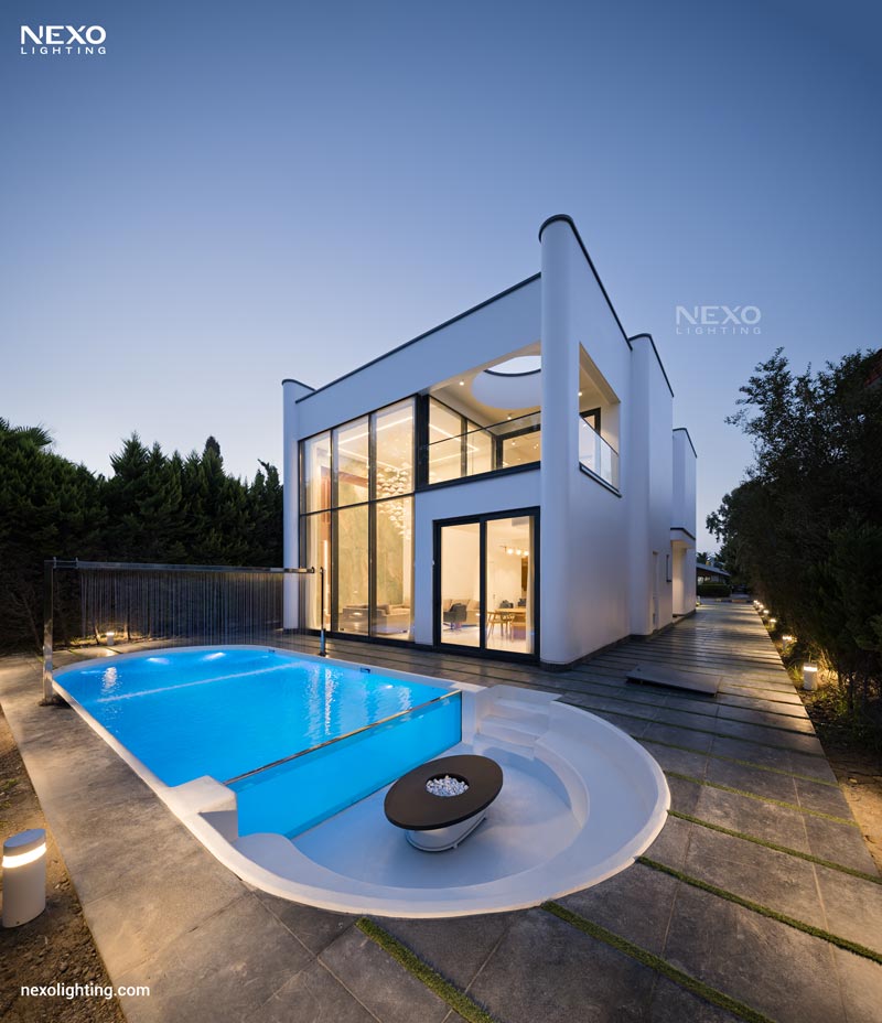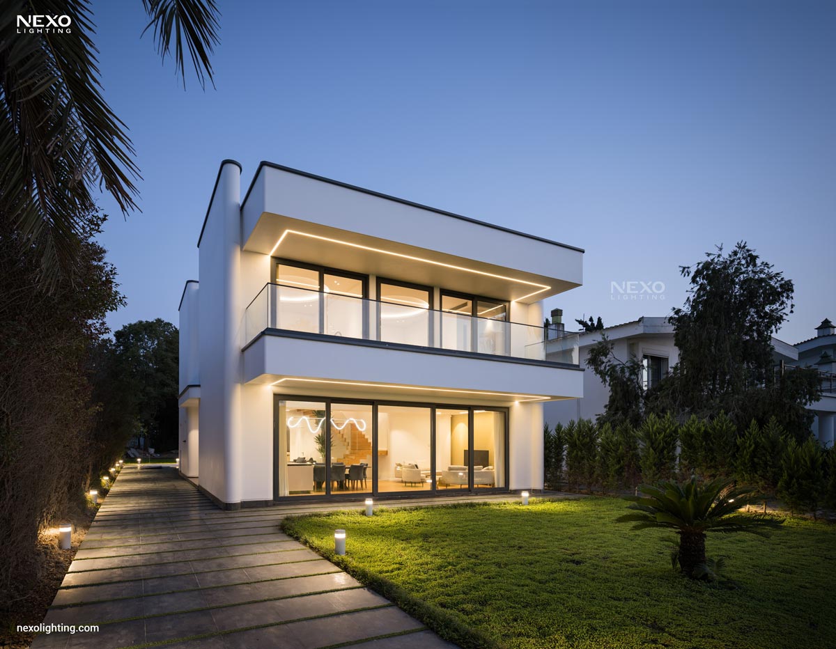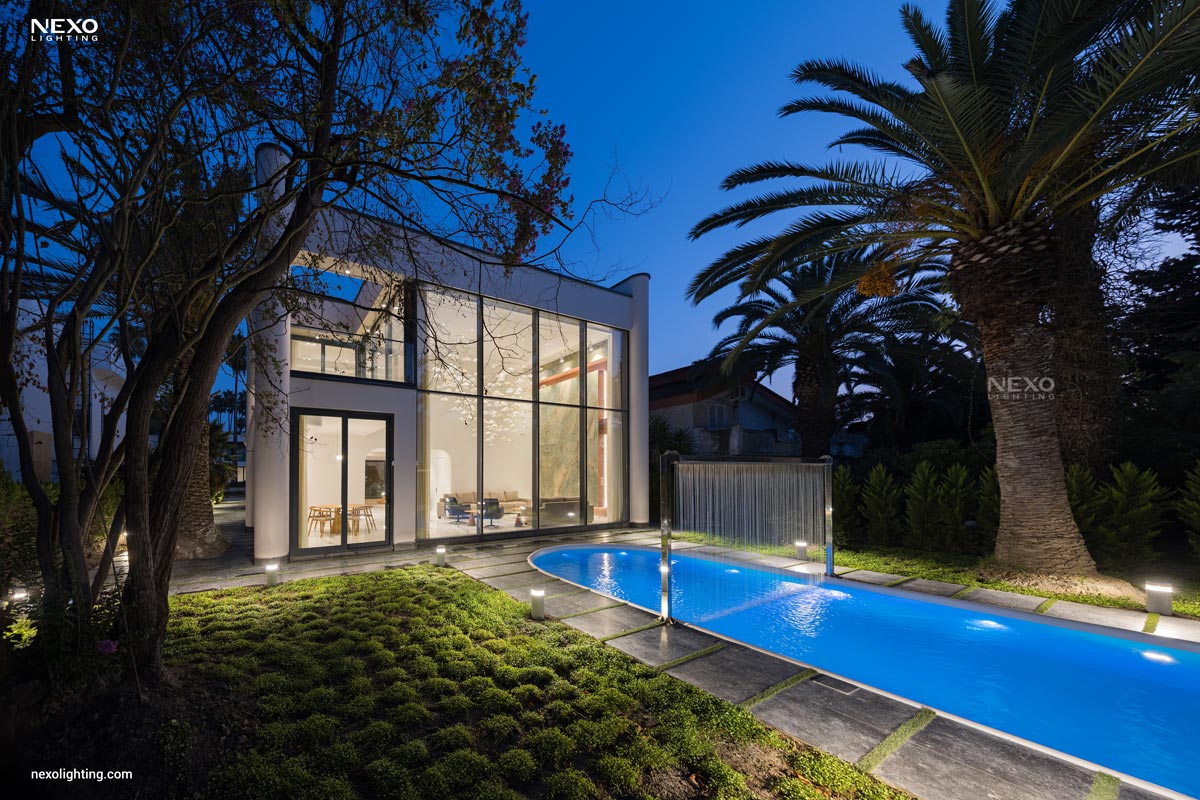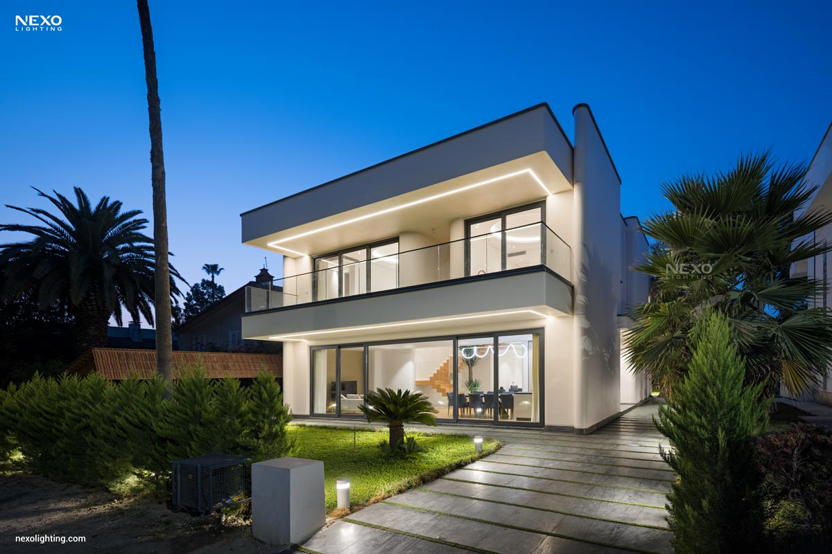 Finally, the villa terrace is illuminated with recessed linear “Verona” luminaires, ensuring a seamless connection between indoor and outdoor spaces.