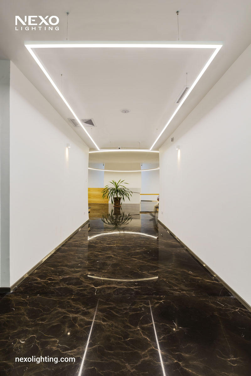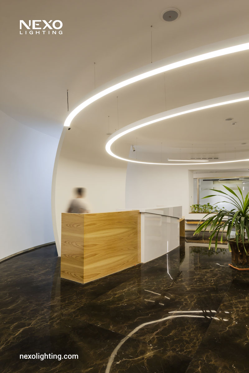 Rooyesh Clinic, located in Salamat town of Isfahan, has utilized recessed Echo lights and Line lights manufactured by NEXO for its lighting. These lights enhance the ambiance and functionality of the clinic space, providing both aesthetic appeal and practical illumination. In the lighting of the head office of Sapramin company, frameless curve line lights manufactured by NEXO have been used, which have had very beautiful effects on the space. NEXO