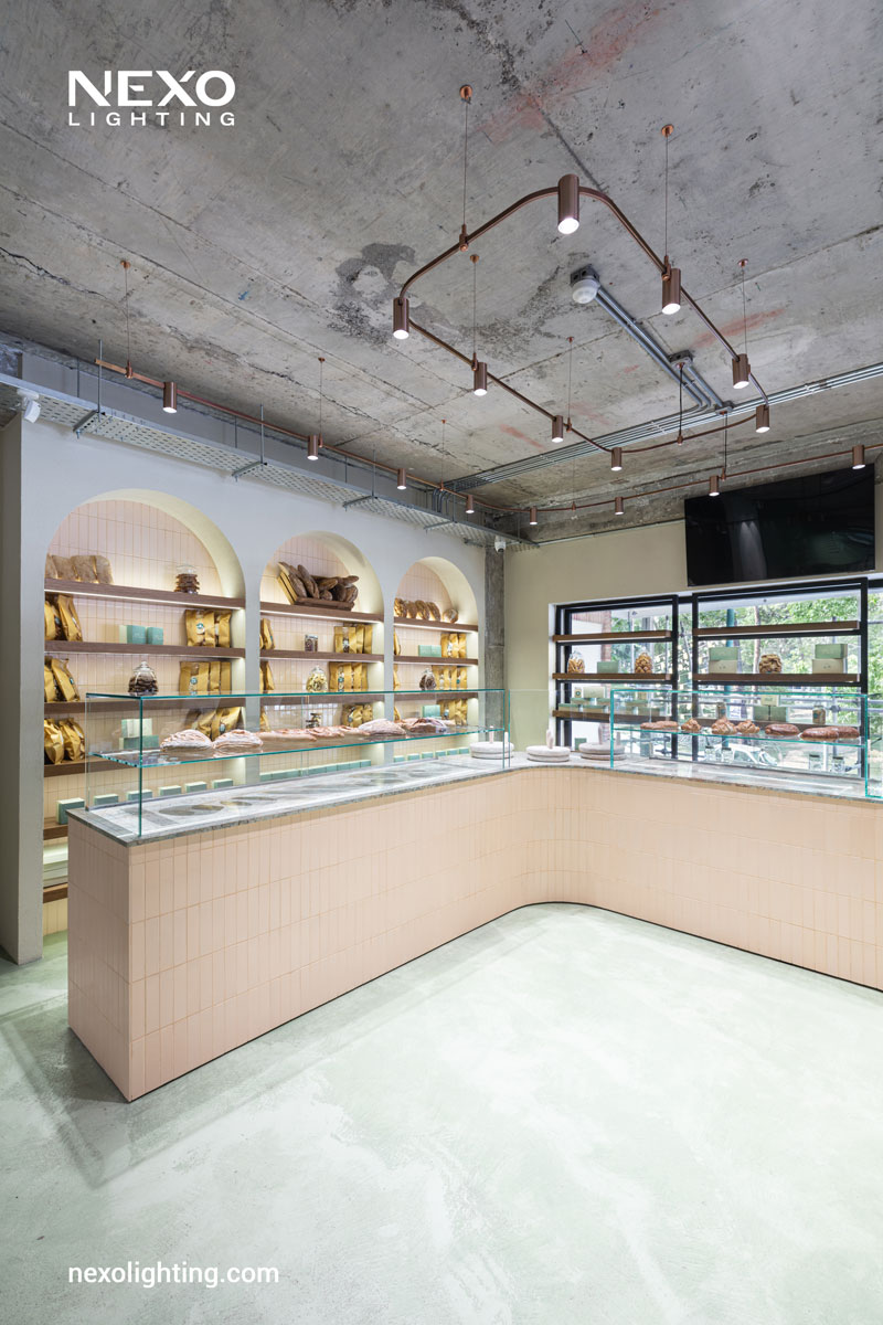 Additionally, the interior lighting of this project utilizes NEXO’s Glory system, which adds unparalleled elegance and beauty to the space. The Glory system is a track-based lighting system featuring various types of brass lights that connect magnetically to the track, offering an excellent alternative to traditional chandeliers.