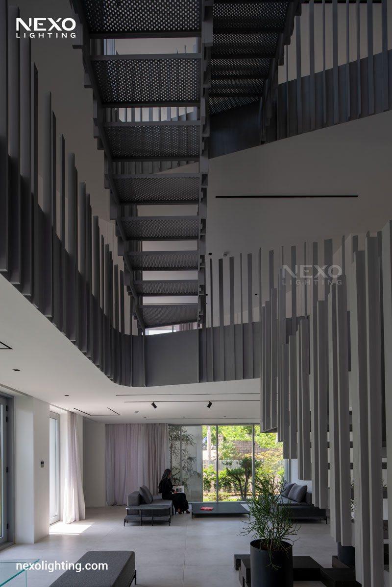 For the interior lighting of the project, ‘Trimo’ darklight luminaires were used to provide general lighting. Additionally, the NEXO Multi Track system, including ‘Unique’ and ‘Lenza’ luminaires , was employed to create both accent and ambient lighting. These magnetic lights, with their easy repositioning and adjustability, allow for diverse lighting scenarios and high flexibility in designing and modifying the lighting of the space.