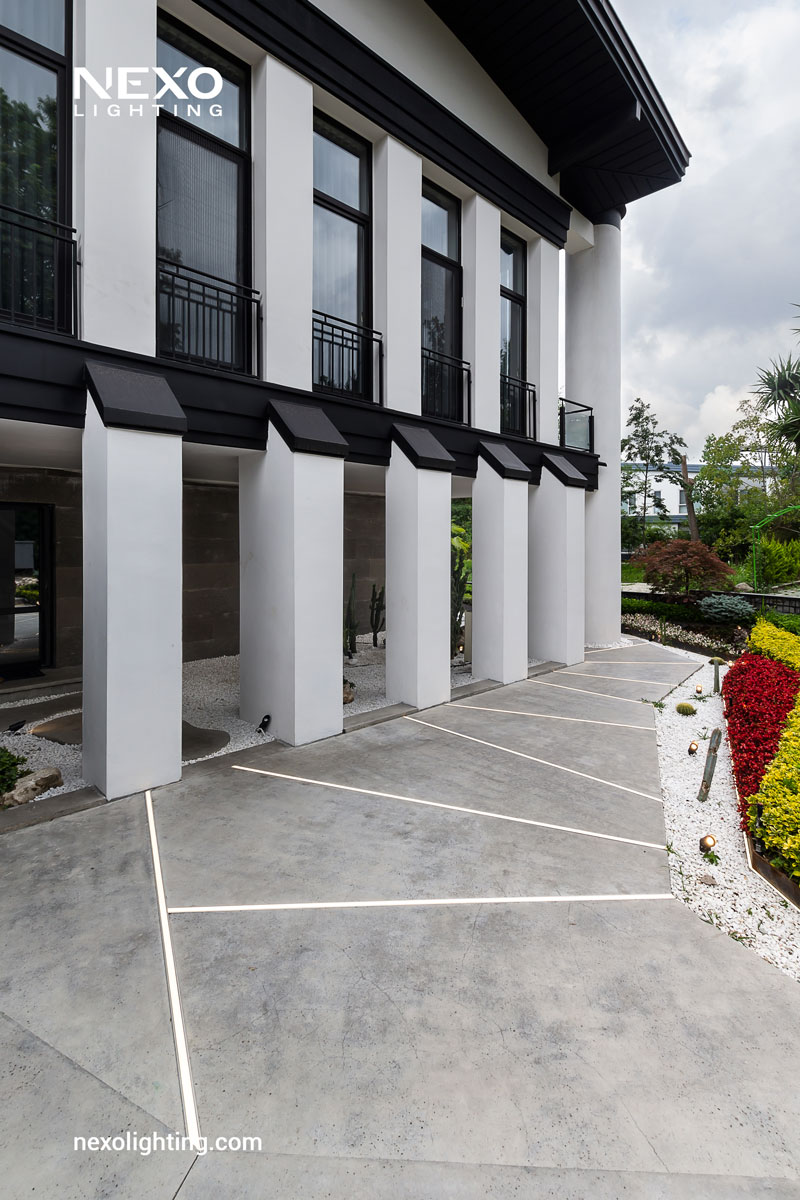 The design of the outdoor and roof garden of this villa has been of special importance, and spaces such as the living room, dining room, jacuzzi, etc. have been placed in the outside area. The lighting of the outside area of this villa is provided with ip68 linear lights from NEXO company, which are completely compatible with special weather conditions due to their resin structure.