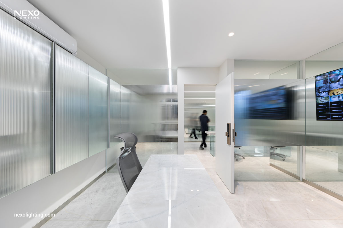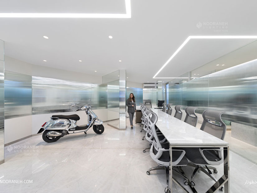 In the Khotootar office, linear luminaires have been used for general lighting, and Trimo dark light luminaires for supplementary lighting.