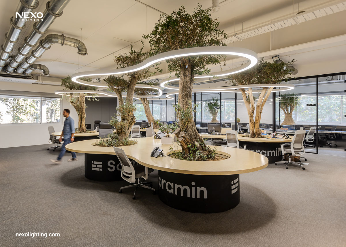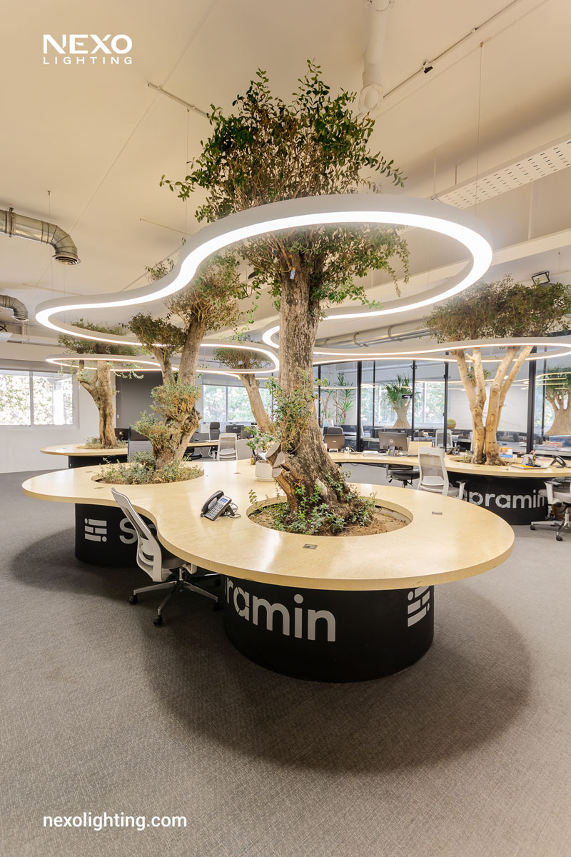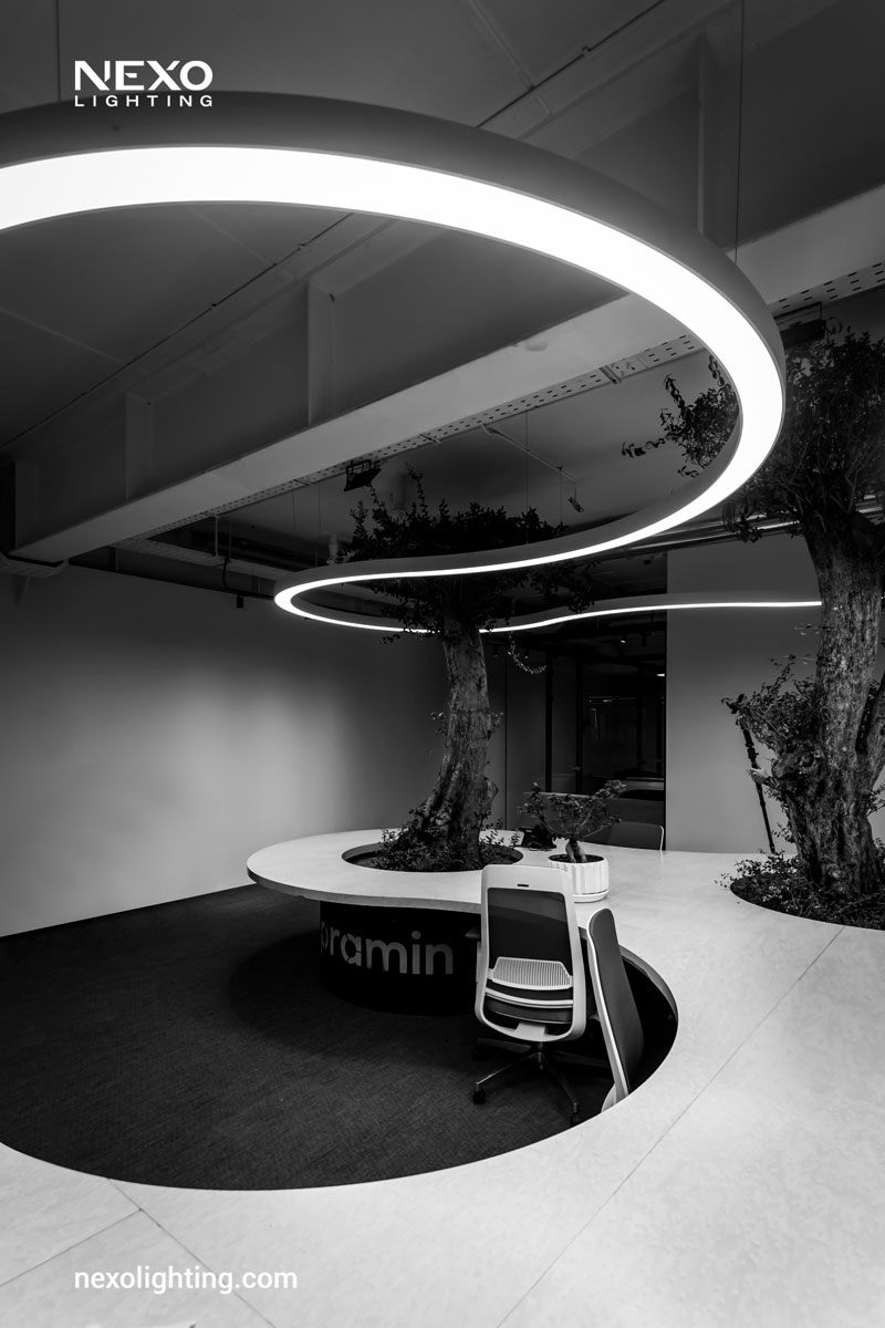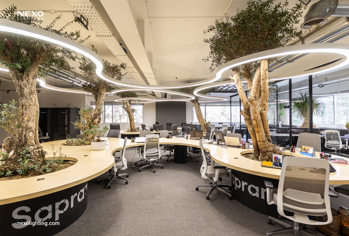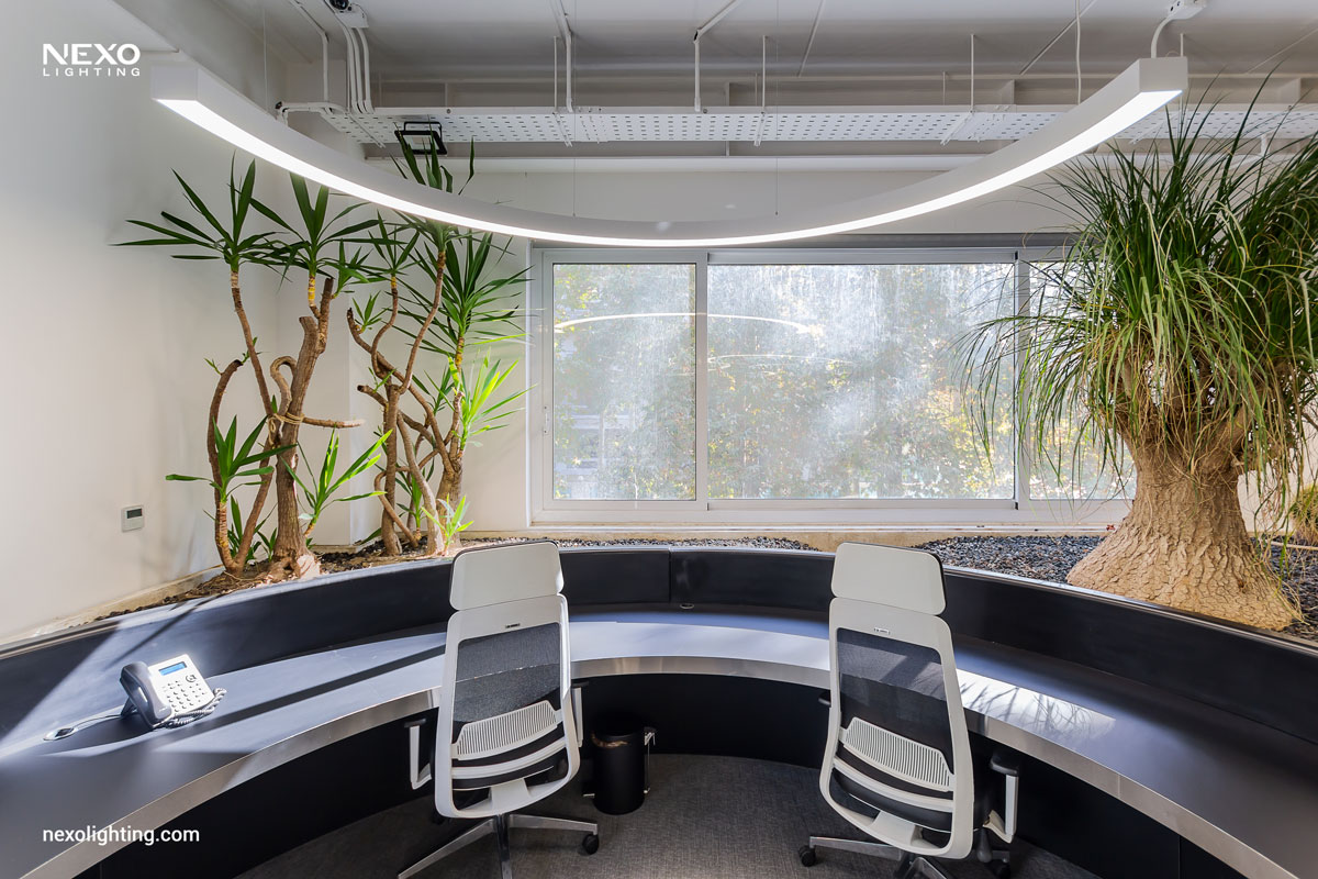 Soft lines and curved organic forms are used in the furniture and lighting design of Sapramin’s office project. NEXO company has created the Curve Line luminaires for this project, considering the potential for manufacturing and customizing lighting products according to architectural ideas, based on the architect’s designs and concepts.