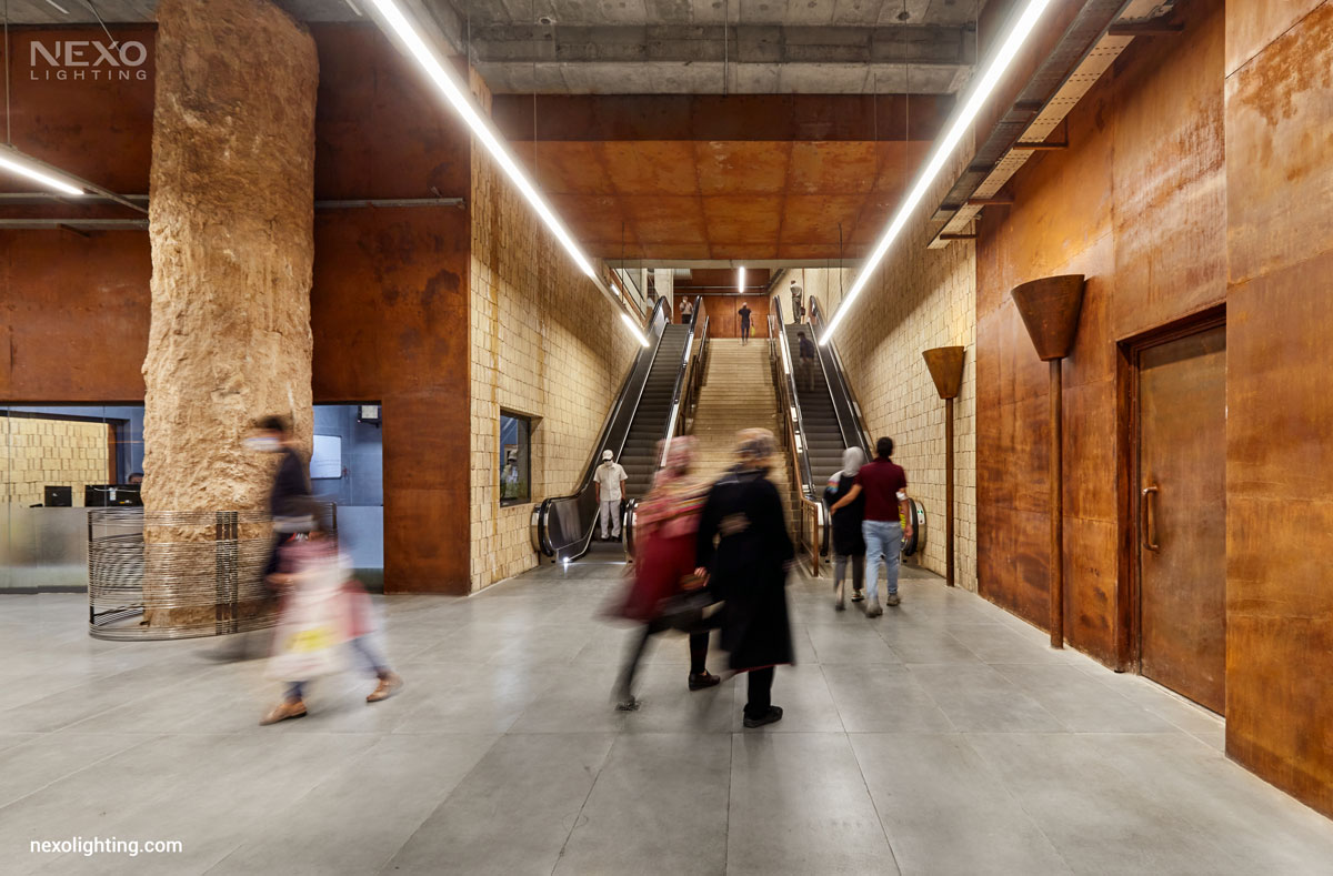 The exposed elements used in Vakil Metro Station, in addition to expressing the architectural office’s design principles, establish a strong connection with the site’s historical context. The lighting design, based on linear luminaires, not only enhances readability, wayfinding, and overall illumination, but is also carefully coordinated with the architecture, reinforcing spatial clarity and highlighting the character of the station.